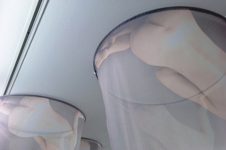 In Zusammenarbeit mit Cornelia Effner und Julia Seidensticker entstand fan you als Ergebnis einer gemeinschaftlichen Werkstatt, die sich spielerisch mit Personenkult, Selbstbild und Ikonografie beschäftigt. Als persiflierende Entgegnung auf meine eigene Arbeit fiat lux lasse ich die kegelförmigen Lichtobjekte Kopf stehen, sodass die nackten Frauengestalten die Decke belagern — und das Licht gleichsam gen Himmel fällt. (Fotografien Bruno Weiss) 2009